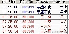 三六零竞价下压至两个点,竞价一波开盘一笔回手淘。与此同时荣盛石化竞价出局。如图所示: