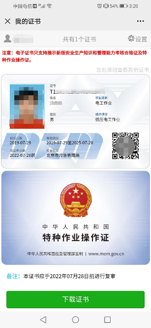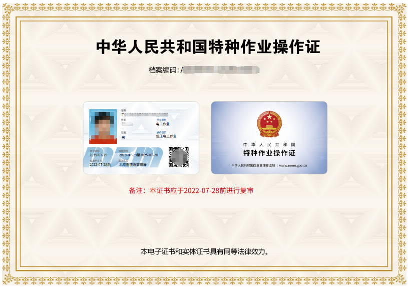 浙江应急管理局特种工作业证书样本