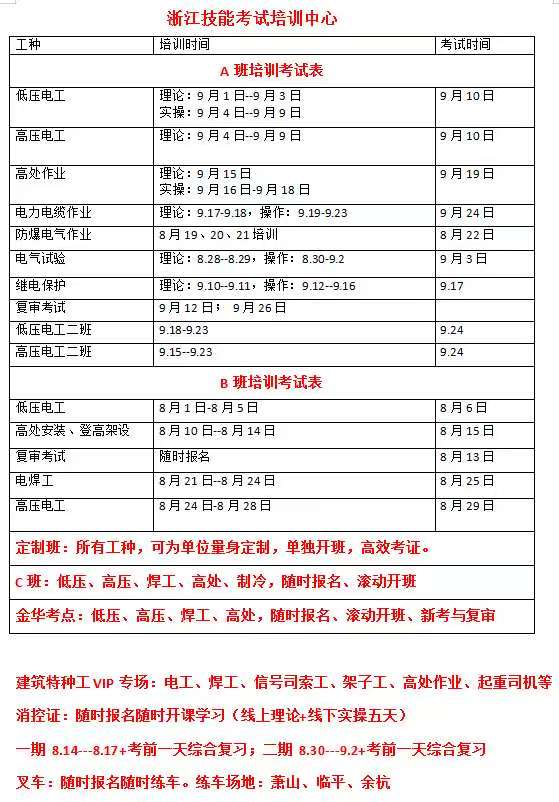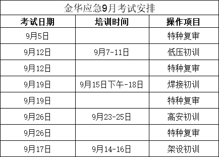 浙江省金华市电工证9月培训考试报名时间表